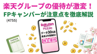 家計の救世主「楽天グループ(4755)」の株主優待をFPが徹底解説!楽天モバイル30GB無料SIMの賢い活用アイデア(キッズスマホ、povo併用など)から、2026年からの継続保有ルールの変更点まで、投資初心者向けにわかりやすくお届けします。